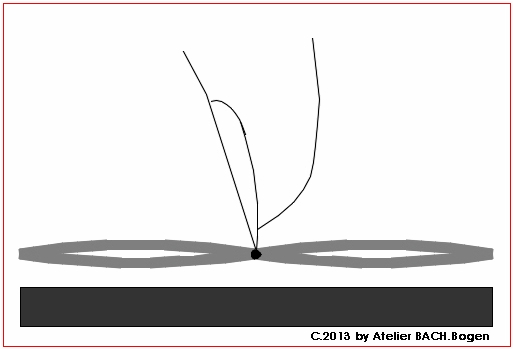CJW: Genau, genau. Das ist dann quasi das „d”, aber ein bischen zu „hoch”. Vielleicht wird der Ton sowieso etwas zu „hoch” bei dieser Technik aber zusätzlich ist es noch so, daß man die linke Hand eigentlich schon „in den Bogen setzen” müßte.