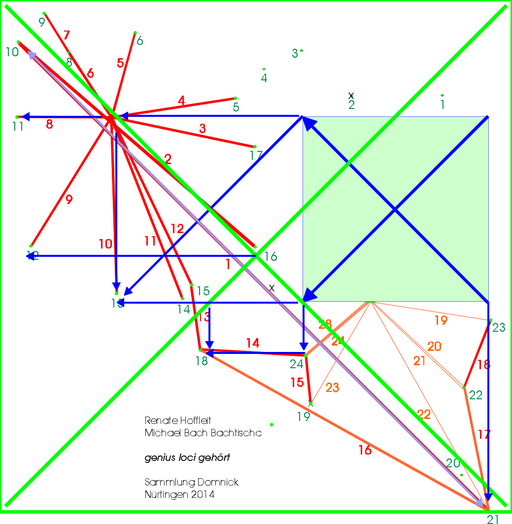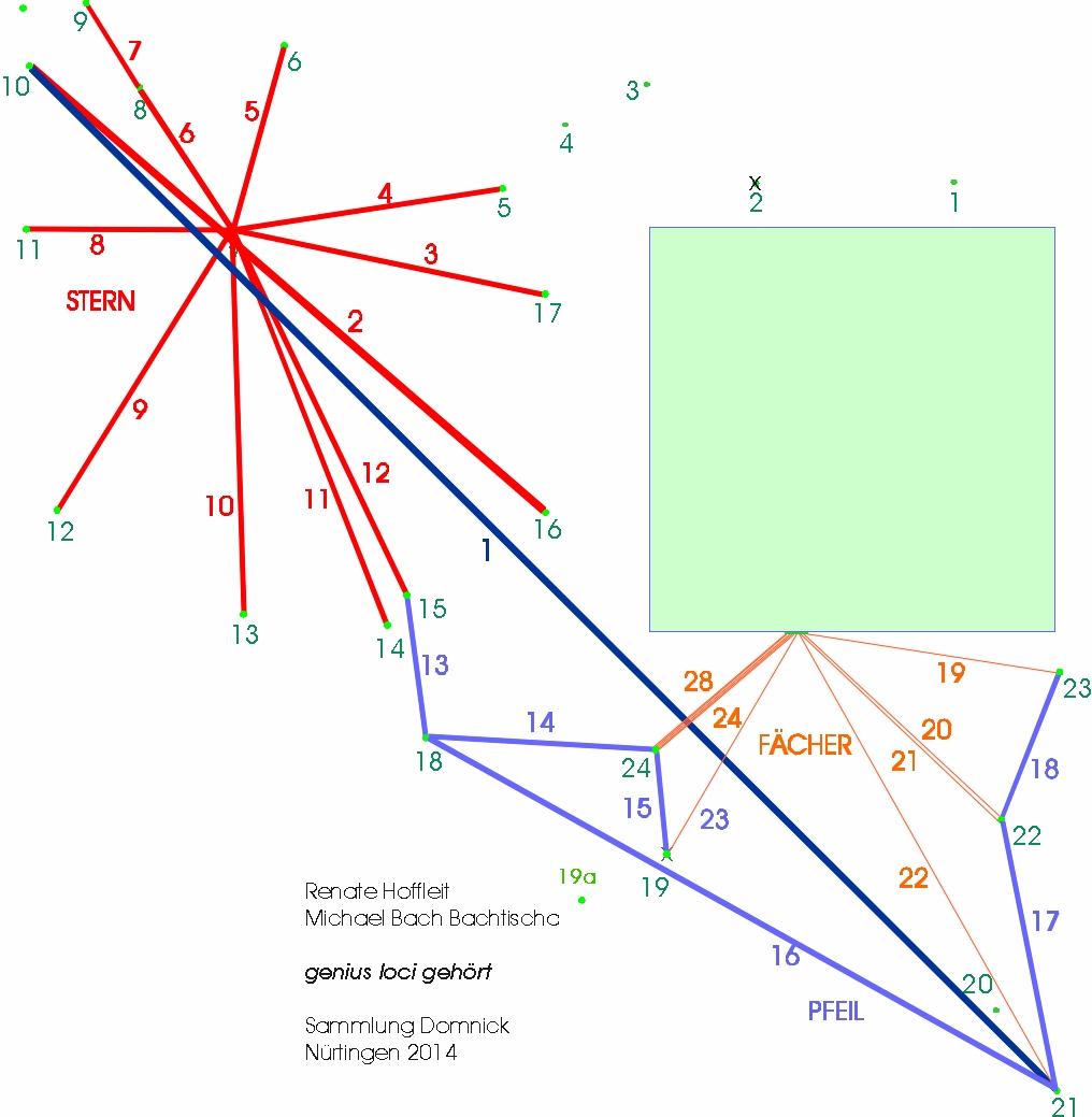 Die Saiten N° 2 – 12 des STERN wurden bei der Eröffnung der Saiteninstallation am 22. Juni 2014 von Renate Hoffleit und mir zum Klingen gebracht, mit Ausnahme der kürzesten Saite N° 7.
