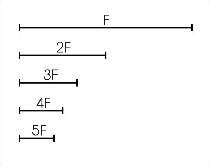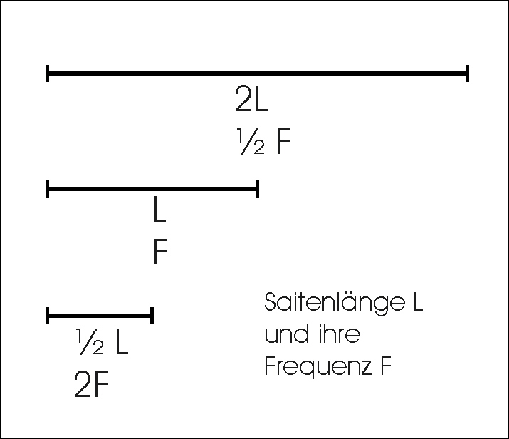 Wenn die Länge einer Saite mit einem beliebigen Faktor multipliziert wird, so wird ihre Frequenz mit demselben Faktor dividiert. So lassen sich die Obertöne einer Langen Saite mit Saiten der Längen von 1/2, 1/3,1/4, 1/5 usf. der Ausgangslänge produzieren.