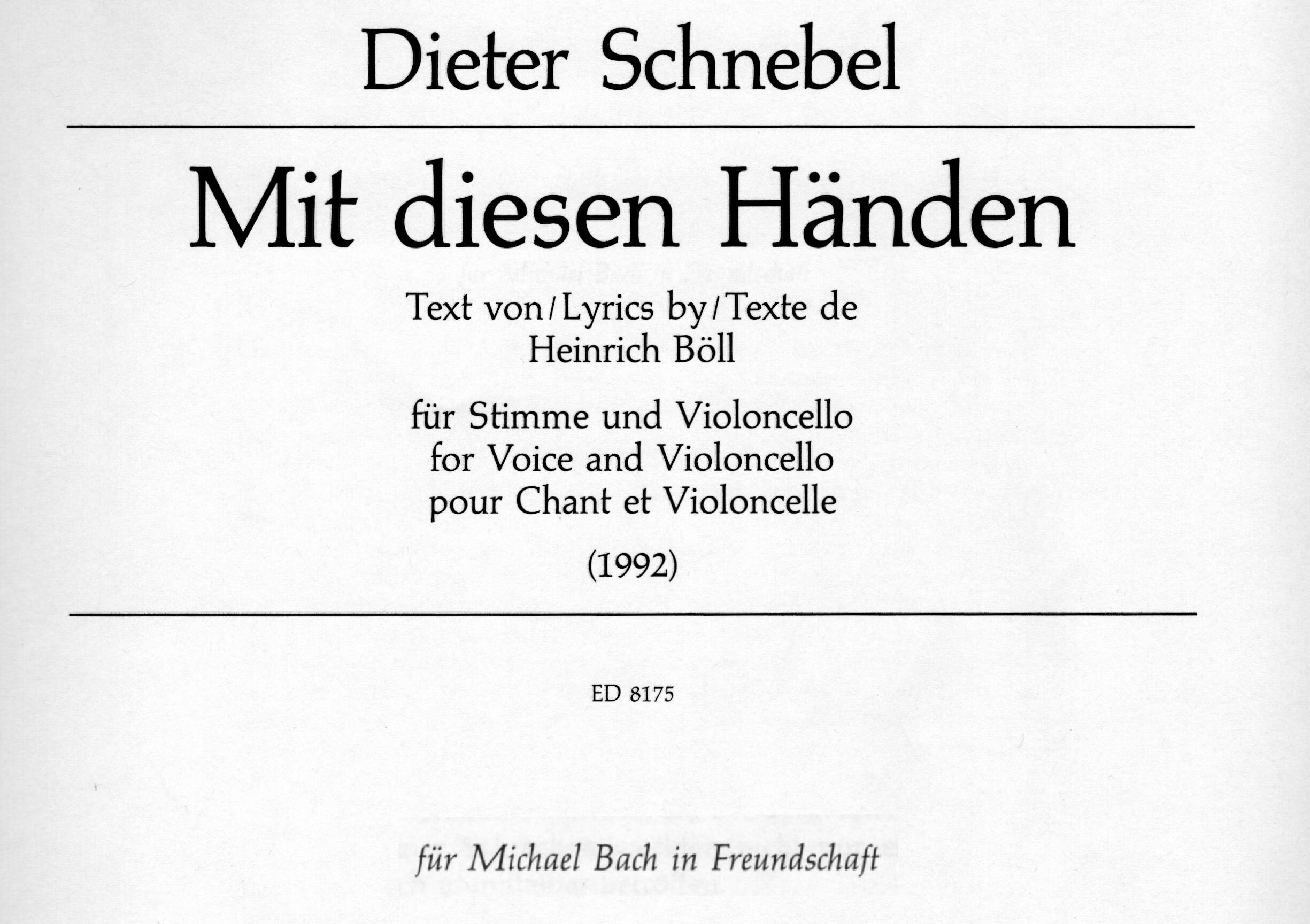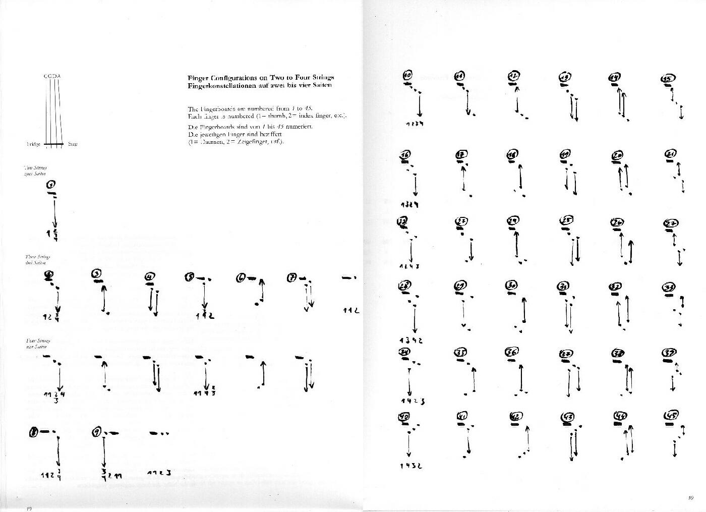 Michael Bach (MB): Heute morgen habe ich mal kurz in meinem Archiv nachgeschaut, seit wann wir uns kennen. Gefunden habe ich drei Briefe aus den Jahren 1989 und 1990 und dein Stück „Gugging” für Cello solo. Du hast es 1986 geschrieben und ich habe es sehr oft gespielt, eigentlich in der ganzen Welt, Holland, Japan, USA, Frankreich, Deutschland, … Wir hatten ja damals sehr viel zusammen gemacht. In dem letzten Brief sprichst du davon, daß du zu „Untitled Composition ” [für Cello und Klavier von Morton Feldman] gehen willst, das damals der Pianist Klaus-Steffes Holländer und ich gespielt haben. Das sind so Sachen, auch die Entstehung meines Buchs „Fingerboards & Overtones “, die du ja mitverfolgt hast (und auch eine kleine Korrektur angebracht hast: die doppelte Hochoktavierung des Violinschlüssels wird mit einer 15 und nicht mit einer 16 angezeigt), … das sind eben so Sachen, die halt mitschwingen, wenn ich jetzt mir dein neues Stück anschaue.
