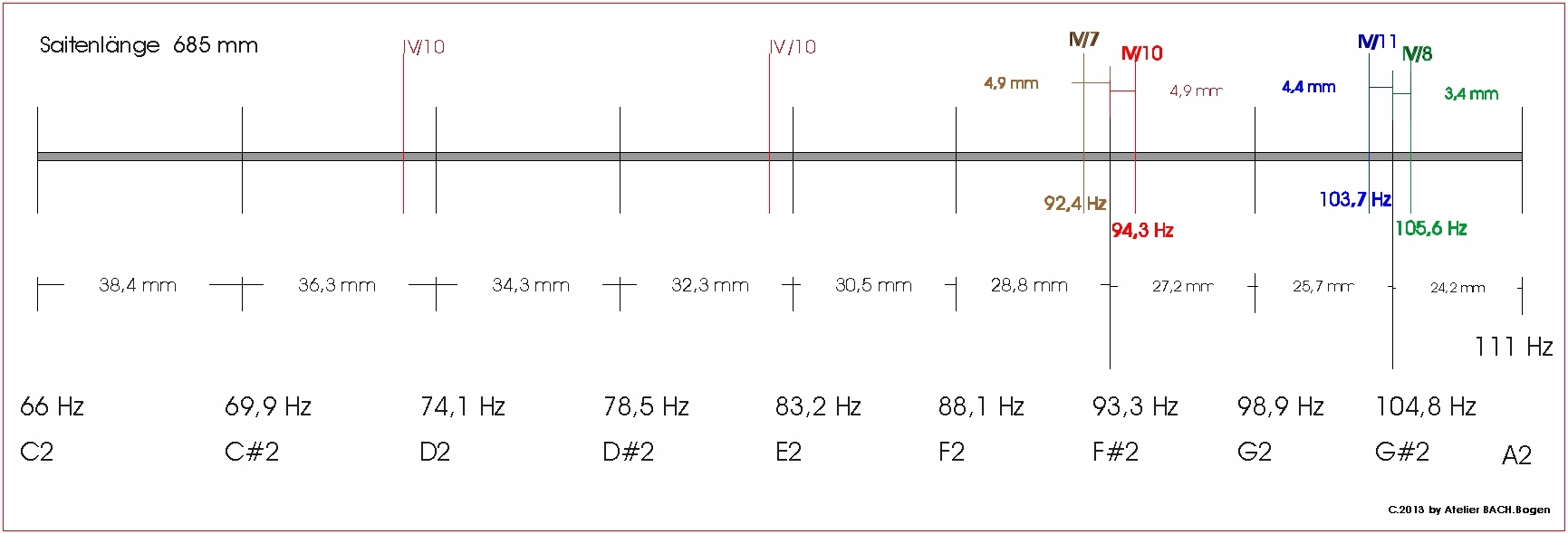 Fehlgeschlagene Partialtöne sind unüberhörbar, mikrotonale Schwankungen im 1/12 Tonbereich, noch auf der C-Saite bei ca. 93 Hz, sind schlicht unhörbar. Um überhaupt irgendwelche mikrotonalen Unterschiede hörbar zu machen, ist „grobe” Übertreibung vonnöten, d. h. Schwankungen von ca. 1/4-Ton.