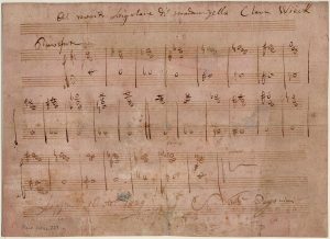 Die abgebildete Notenskizze schenkte Niccolò Paganini der jungen Clara Wieck (Schumann) während seines Aufenthaltes in Leipzig am 16.10.1829.